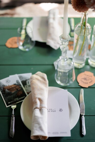 А затем - традиционные длинные, щедрые столы, где всё - от рыжиков до каперсов из настурции, от тарусского хлеба до местных колбас - было собрано с любовью и уважением к земле. В бокалах Borjomi, чтобы подчеркнуть вкус и обострить чувства.